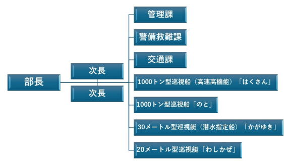 金沢海上保安部の管轄区域は、石川県の羽咋郡志賀町と輪島市の境界から、福井県境の加賀市まで7市6町の沿岸から沖合及び輪島市の沖合海域が担任水域となっています。