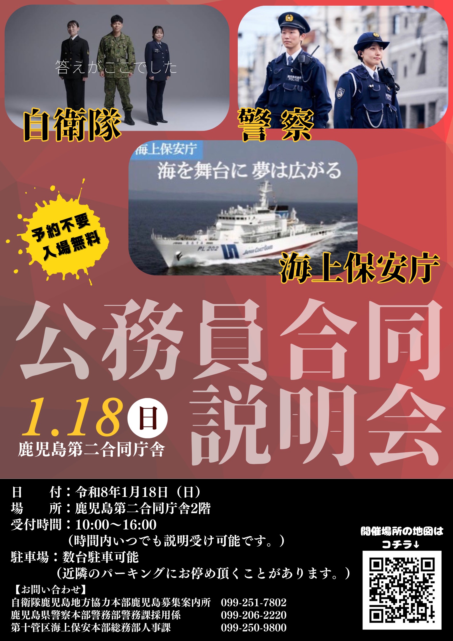 第十管区海上保安本部では、海保・自衛隊・警察の三機関合同説明会を開催します。
