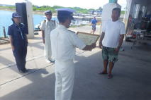 プレジャーボートの安全運航のため、指導・啓発等の安全活動を積極的に行っている方々を「海上安全指導員」として指定し、安全パトロール艇を用いた洋上における安全指導、マリーナ等における訪船指導及び海難防止思想の普及啓発などの活動を行っていただいております。この度、長年に亘り指導員として活動し、海上保安業務に貢献していただいている松井諭氏及び細原直樹氏(9/5贈呈)、新里朝吉氏(9/10贈呈)に対しまして、那覇海上保安部長から謝意をお伝えするとともに感謝状を贈呈しました。