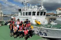 放課後デイサービスを提供する「放課後等デイサービスあったサポート」に所属する児童6名(小学生4年~6年)の皆さんに職場見学を行いました。業務概要説明のDVD鑑賞や救命胴衣の着用体験のほか、巡視艇「でいご」の船内見学では航海計器を見たり触ったりしてもらいました。海上保安庁の仕事を理解する良いきっかけになったと思います。