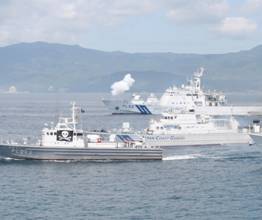 | 昨今、我が国周辺海域では、周辺国の海洋進出の動きの活発化や我が国領海内において中国漁船が当庁の巡視船に衝突してくる事案が発生するなど、緊張が高まっています。海上保安庁では、我が国の領海や排他的経済水域を航行する船舶に対して、国際法等の様々な制約を受けながら、厳しい気象条件の下で、日夜を問わず監視警戒を行い、日本の海を守っています。 | ![]() |