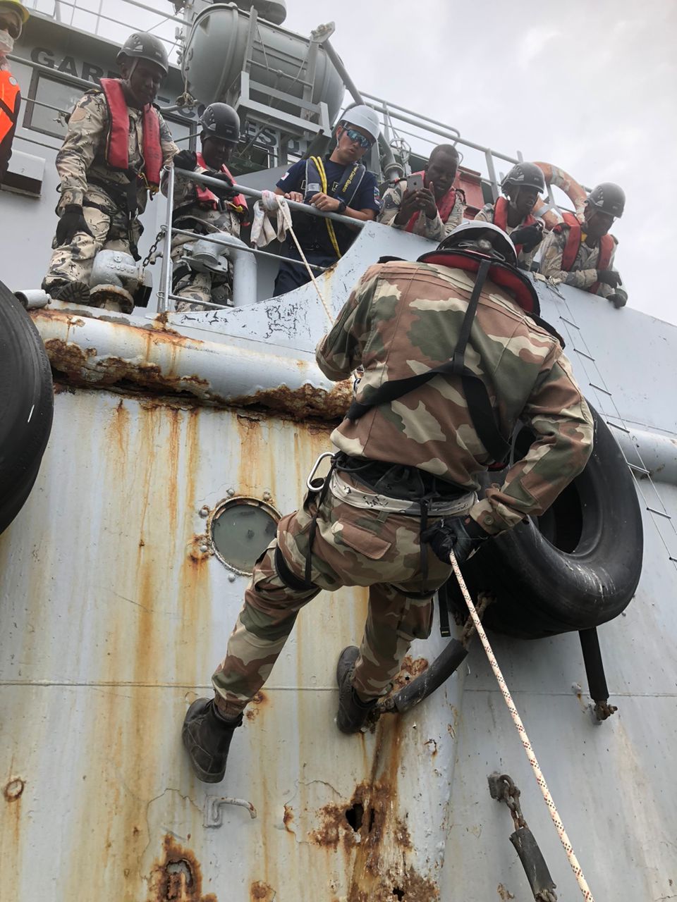 ジブチ共和国において、船舶を想定した陸上コンテナ施設や実際の船舶を使用した船舶移乗訓練を実施し、DCG職員の海上法執行における能力向上を支援しました。