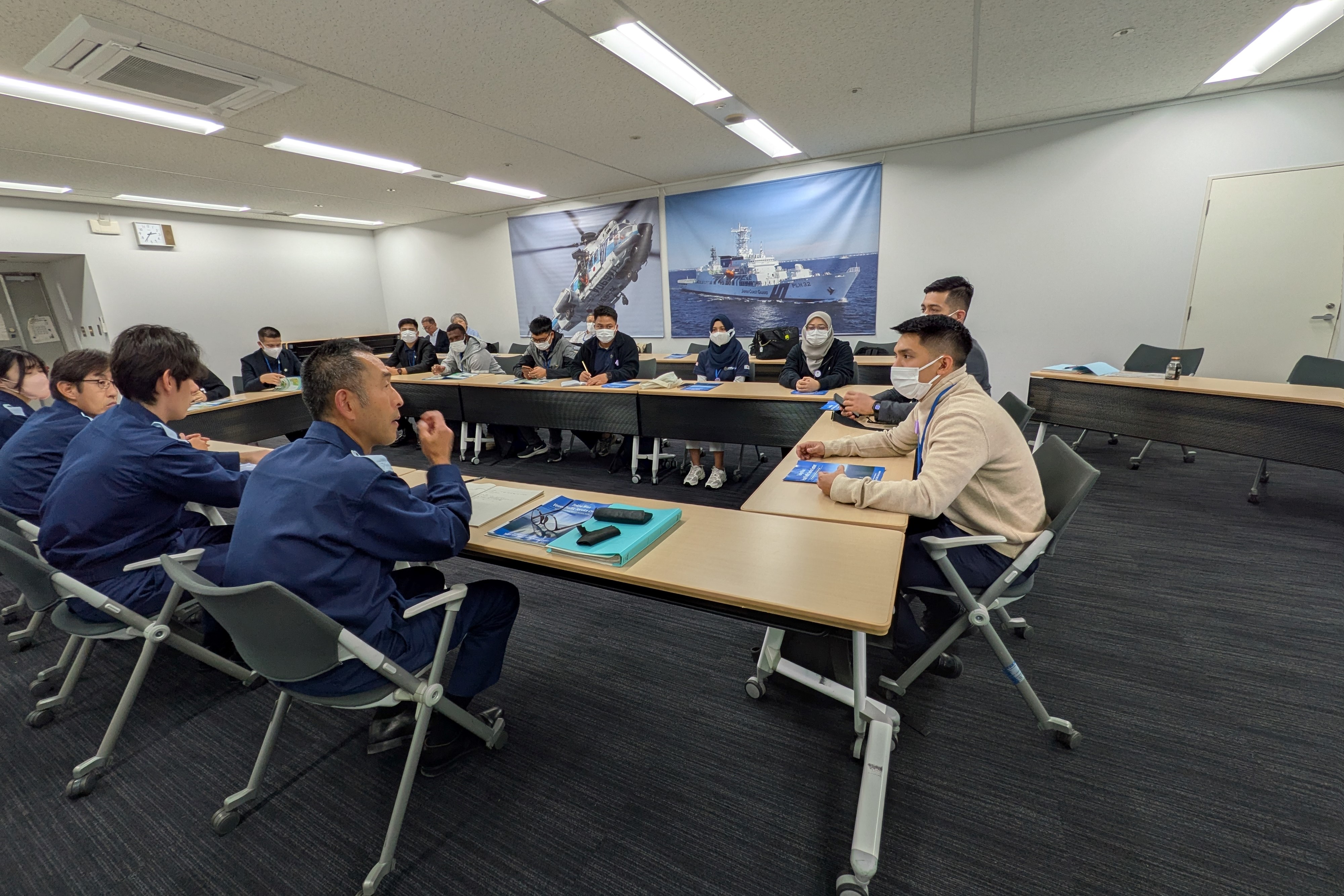 研修員は、海上保安庁担当者によるVTSや台風、津波の来襲時における海上交通センターの運用に関する講義を聴講し、日本の海上交通分野の体制について知識を深めました。