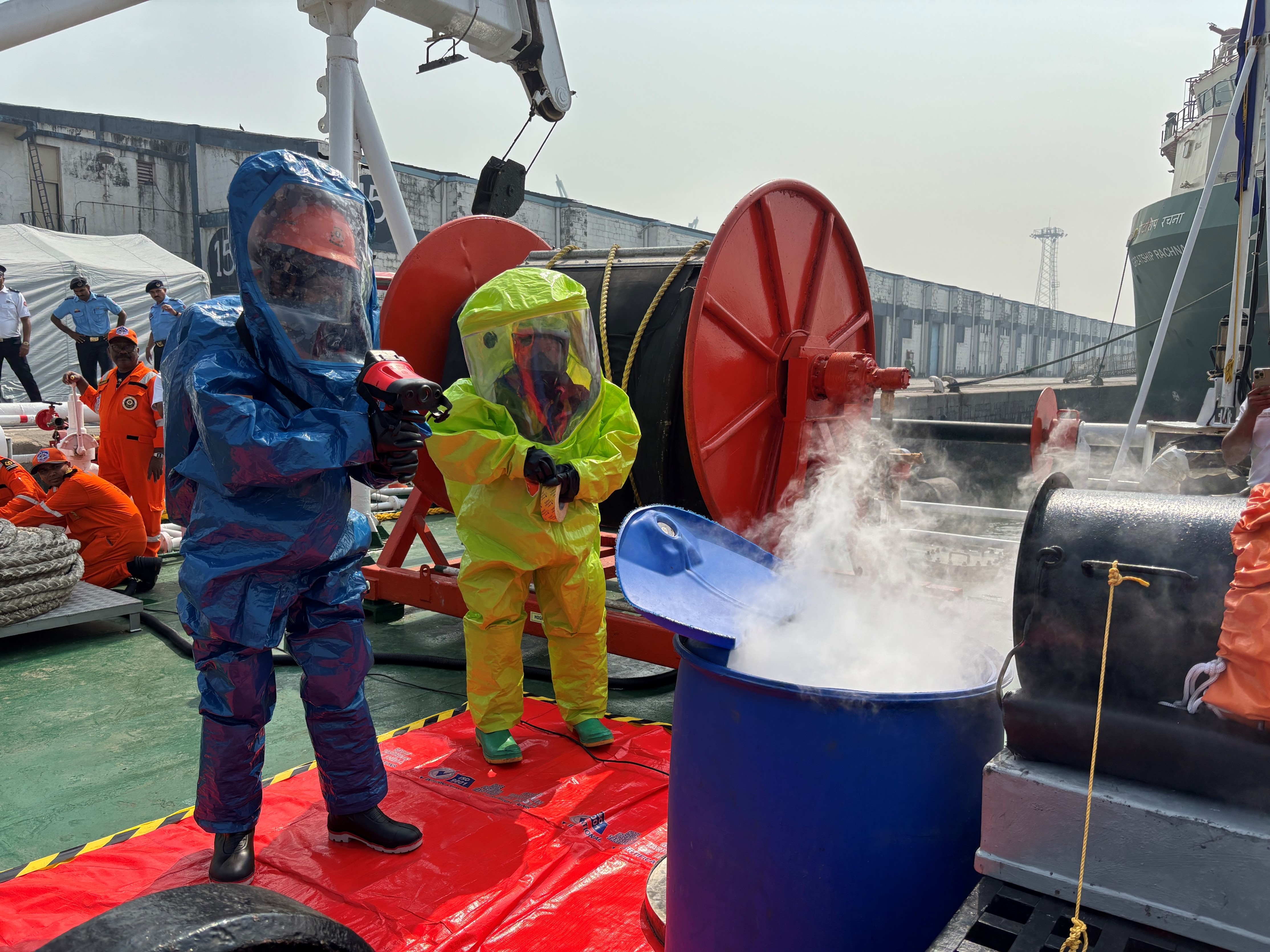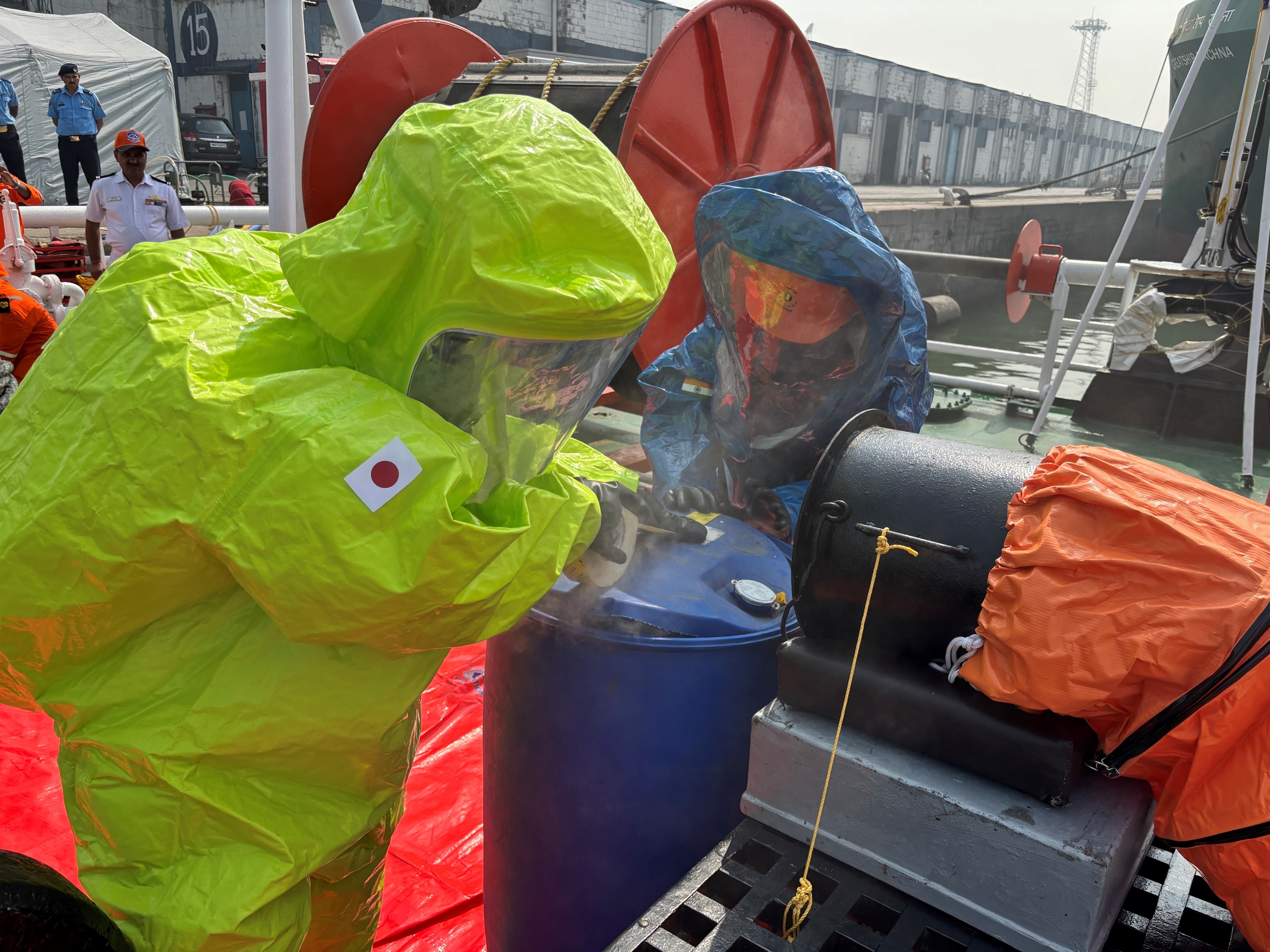 インド沿岸警備隊及び機動防除隊による危険・有害物質の連携訓練①