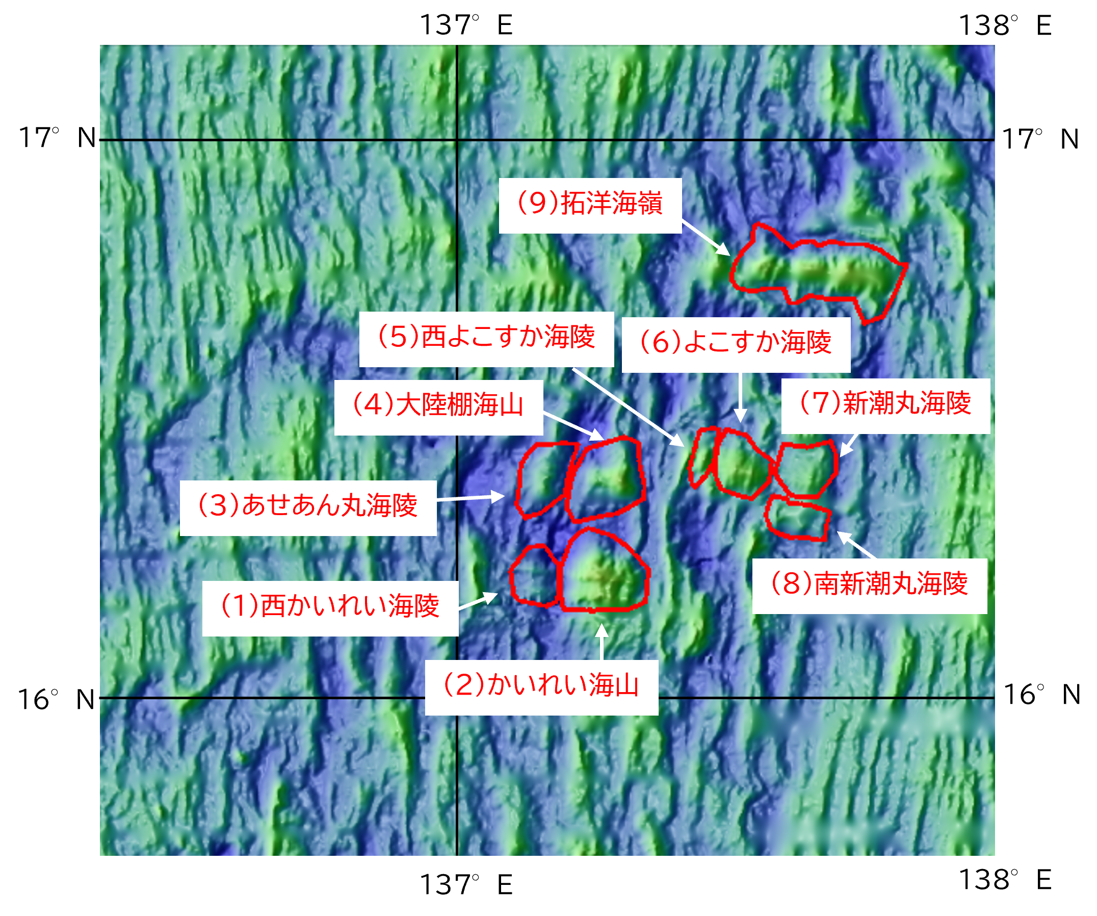 承認された名称は、沖ノ鳥島南南東約400kmのパレスベラ海盆にある海底地形(図1、図2)に付けられたもので、同海域の海洋調査を実施した我が国の海洋調査船の船名が由来となっています。(別紙参照)