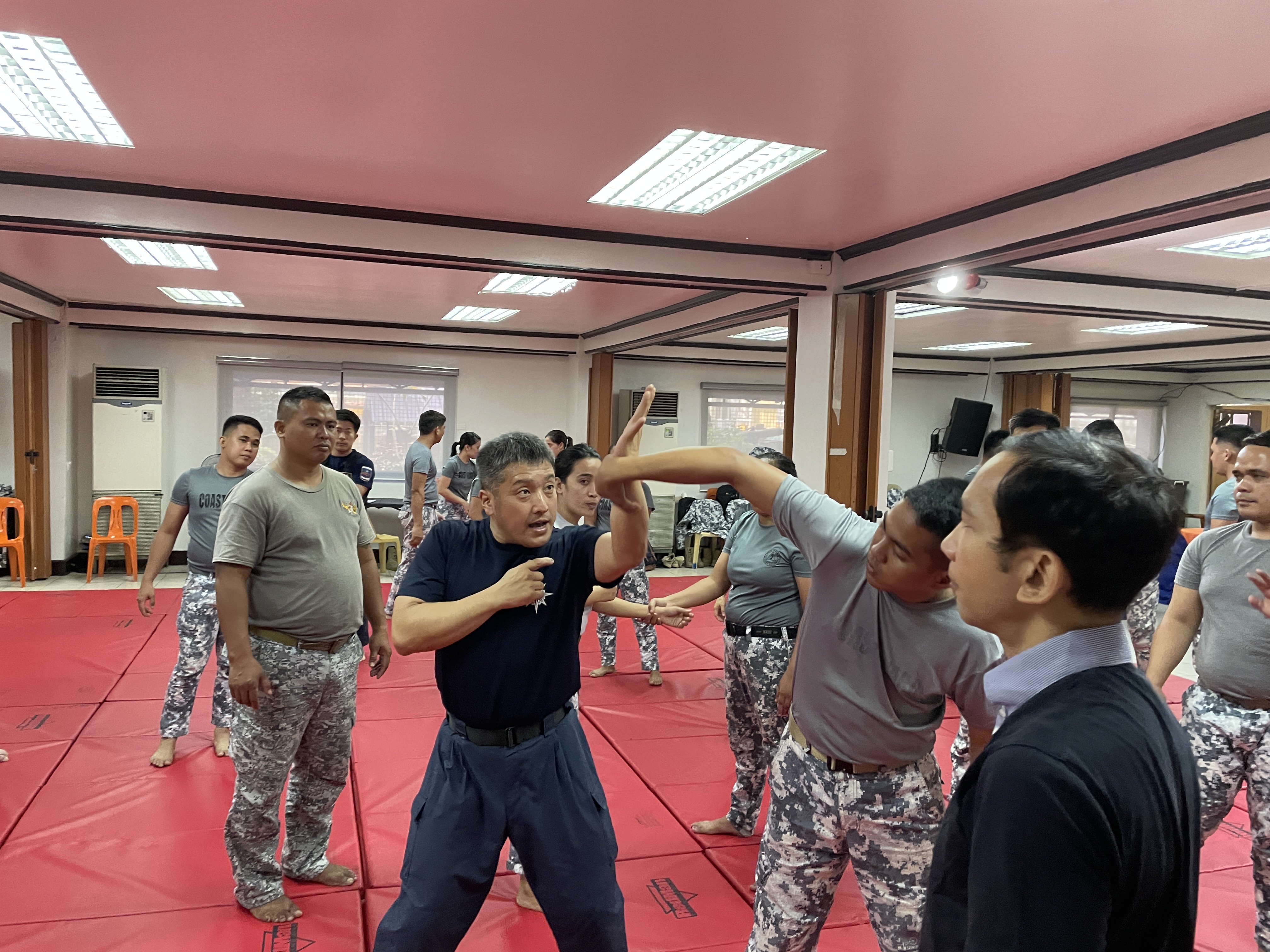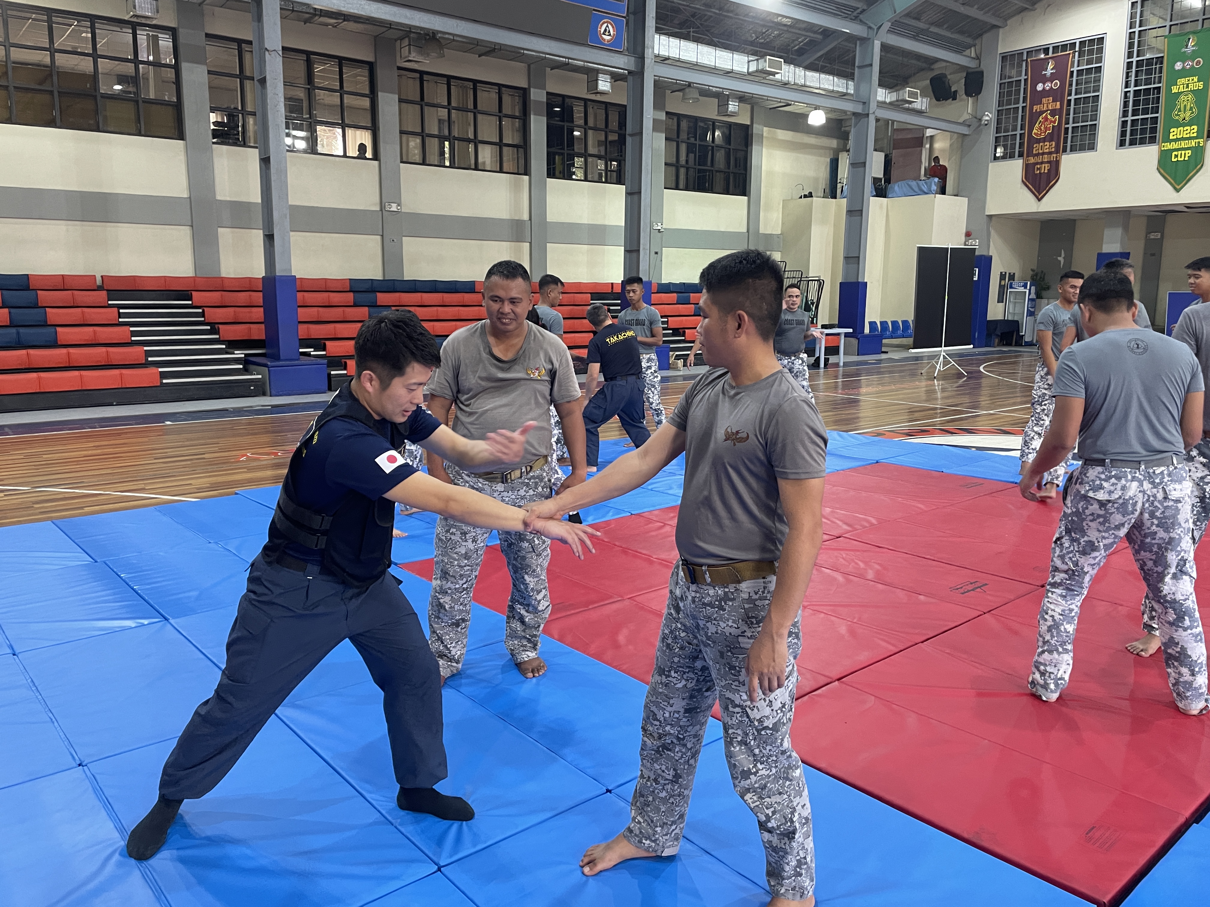 また、同月13日から17日、同じくマニラ市のPCGファローラ基地において、日本で海上保安庁が実施した制圧指導官養成研修に参加経験のあるPCG職員8名に対して制圧訓練を実施しました。