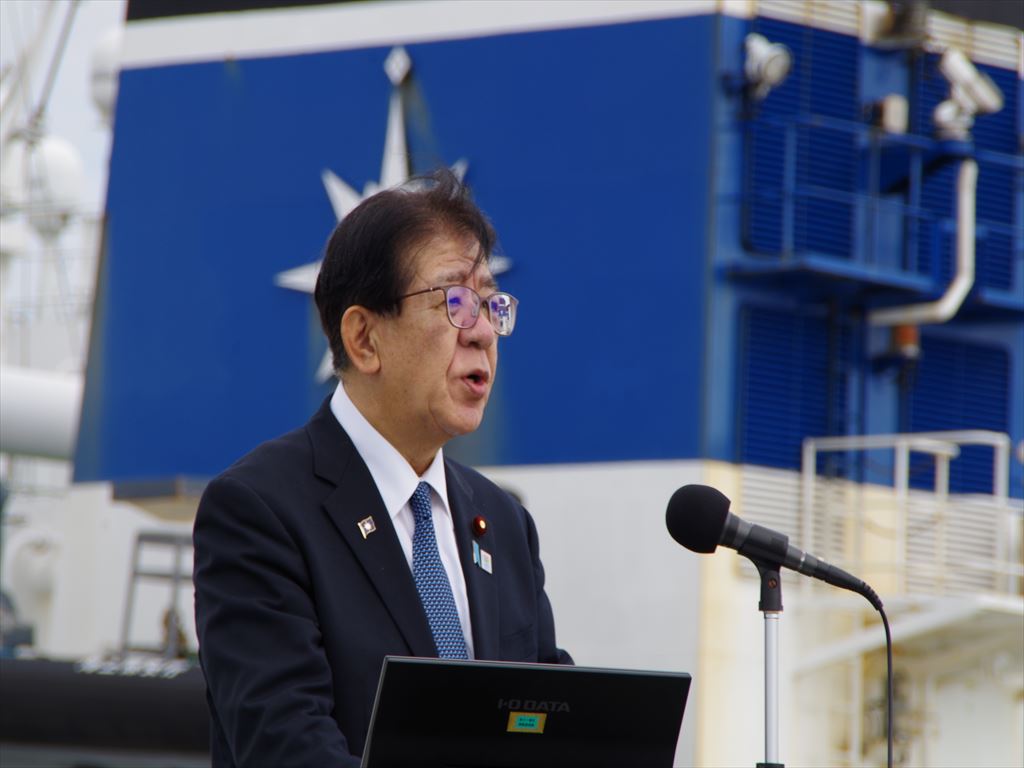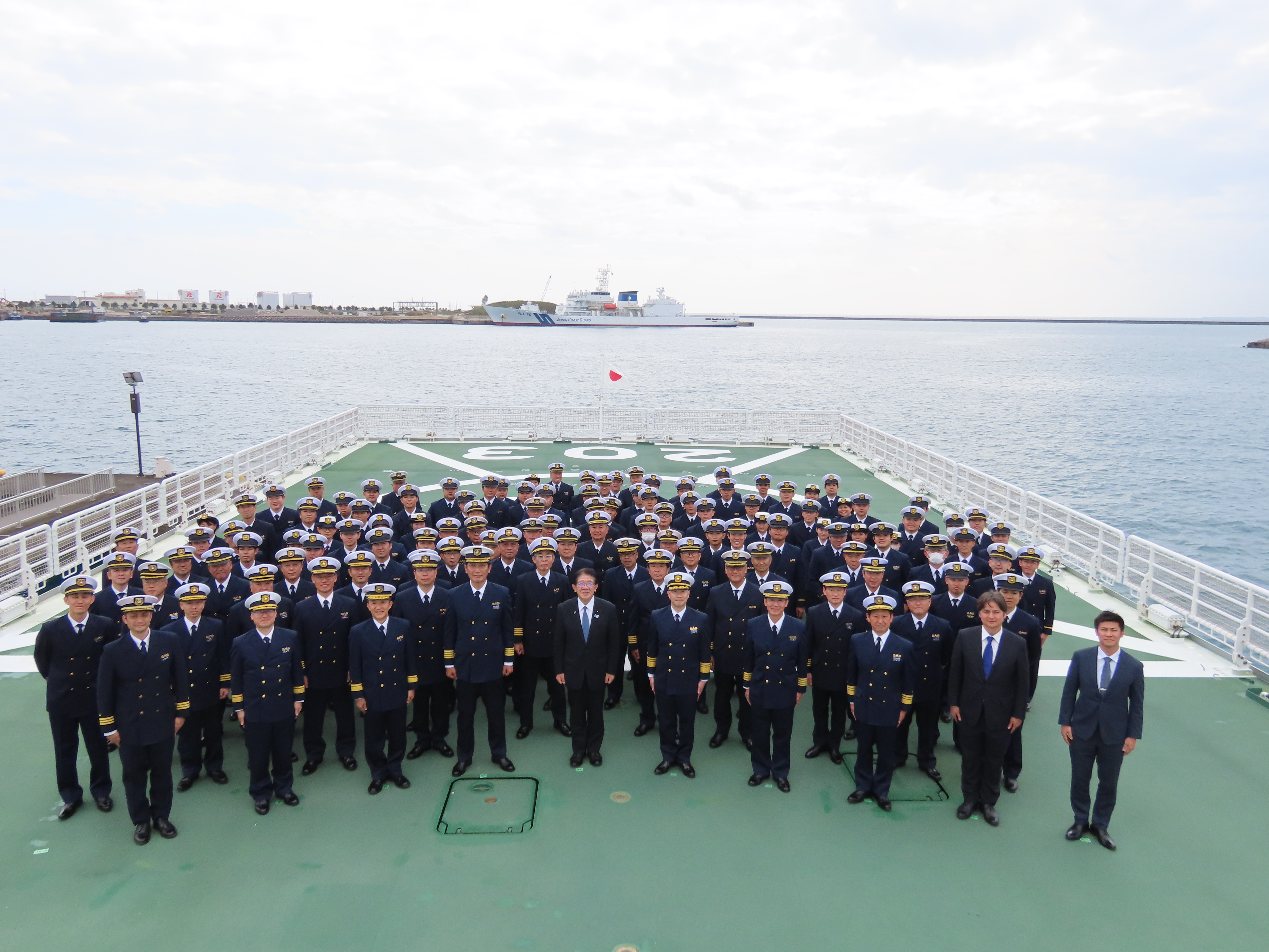 金子大臣は、職員に対し「沖縄の美しく豊かな海が第十一管区職員の日々の献身によって守られているのだということを改めて実感した。」、「海洋国家である日本の砦として、人知れず任務に精励するプロフェッショナルである諸君は我が国の誇りである。」旨激励しました。